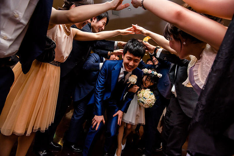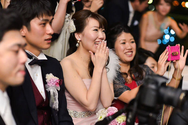 | Q:集合写真も撮ってもらえますでしょうか? | プラン料金内で二次会の集合写真撮影にも対応しております。但し、会場や人数によってはご友人様のお顔が少し隠れてしまったりする場合も御座います。スナップ写真の範囲内という撮影である事をご了承ください。 |